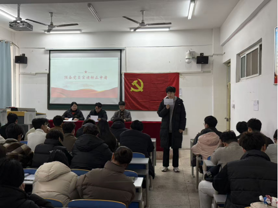 大会第二项议程,讨论徐思凡、王泽阳等23名同志预备期满转为中共正式党员的问题。各预备党员对自身在预备期间的情况做出详细思想汇报,并由两位入党介绍人依次发言并表明是否同意其转正。经过严格的审查和讨论,各党支部全体正式党员进行无记名投票表决,投票结果为同意徐思凡、王泽阳等23名预备党员按期转正。